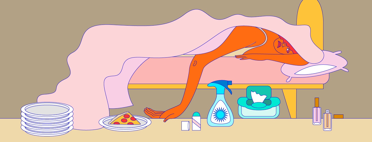 Too exhausted to shower? Use baby wipes to clean your body and dry shampoo to make your hair look and smell fresher. A scented deodorant spray can also help with unpleasant body odor. It also helps with smells on clothing, if doing laundry is just not feasible. What if your bed has seen better days and smells? Changing or laundering the sheets may seem impossible, but shaking off the sheets and spraying some Febreeze goes a long way!