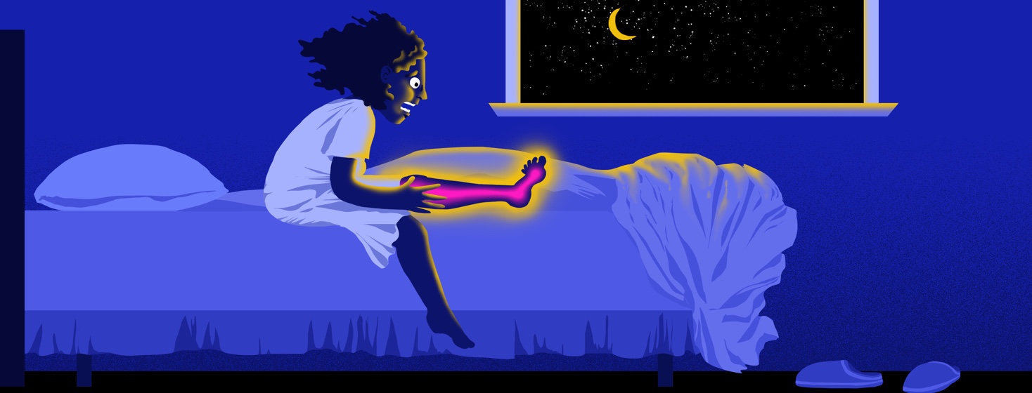 Take deep breaths as you fall asleep. Inhale and exhale slowly. Train yourself to count to 8 on the inhale and count to 10 on the exhale. Do the same thing during a leg cramp to help get oxygen to the muscle.